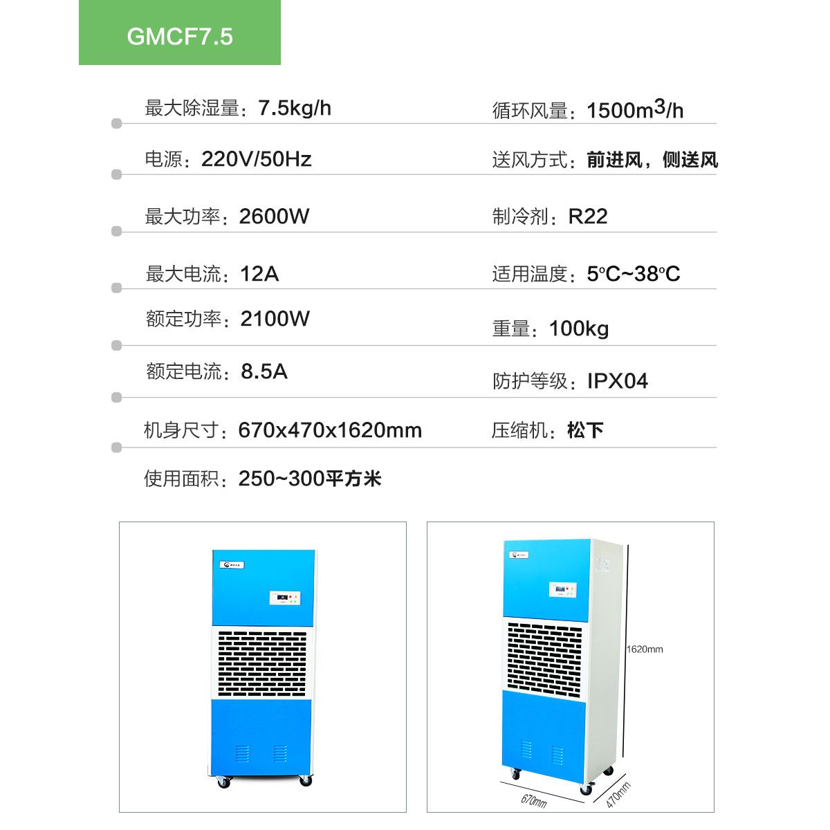 除湿量:7.5kg/h