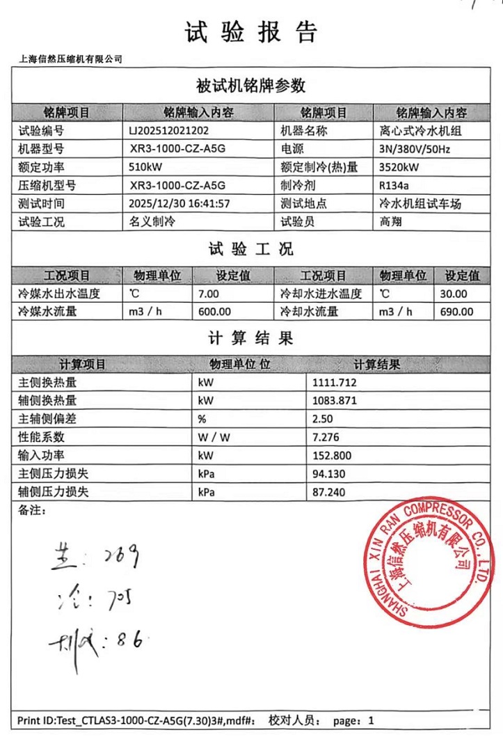 近日,信然磁悬浮中央空调(水冷机组)在实测中取得令人瞩目的能效表现:其制冷能效比COP值突破7.276,大幅超越国家一级能效标准,展现出卓越的节能实力,比传统中央空调节能超30-50%,信然磁悬浮中央空调(水冷机组/热泵)是完全国产化最节能的空调产品。