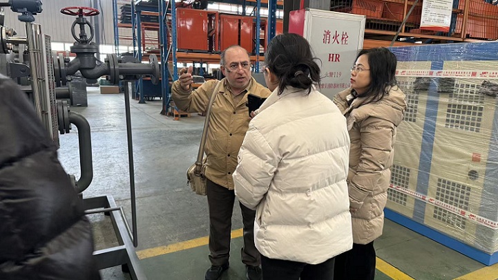 考察过程中,伊朗客户深入参观了设备生产车间与检测中心,信然技术经理详细讲解了该台ORC有机朗肯膨胀发电机的生产制造工艺、核心技术参数及性能优势,重点演示了设备的智能运行、余热转化效率等关键指标。针对客户关注的设备现场安装、后期运维及适配场景等问题,技术人员逐一进行专业解答,并开展了设备模拟运行实操展示。