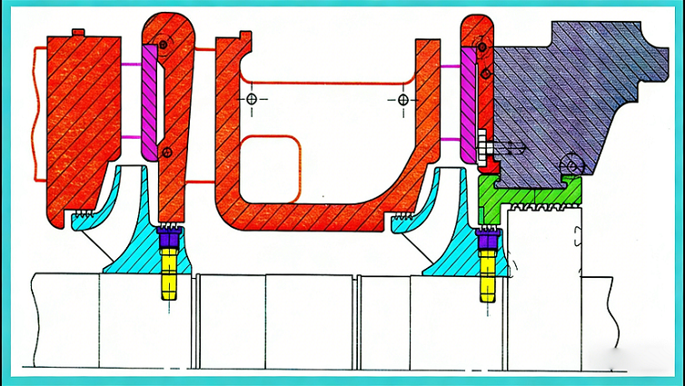定子:固定不动的部件。主要包含气缸和其上的各种隔板等零部件,如扩压器、弯道、回流器、密封、吸气室和排气蜗壳等。