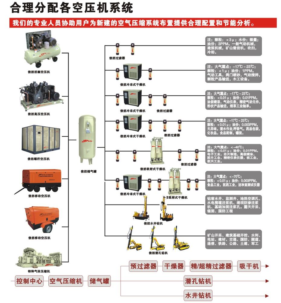 是专门用于储存压缩空气的压力容器,主要用于存气缓冲,同时起稳定系统压力的作用,避免空压机频繁加卸载和除掉大部分的液态水,主要与压缩机、冷冻式干燥机、过滤器等设备配套使用,组成工业生产上的动力源压缩空气站。